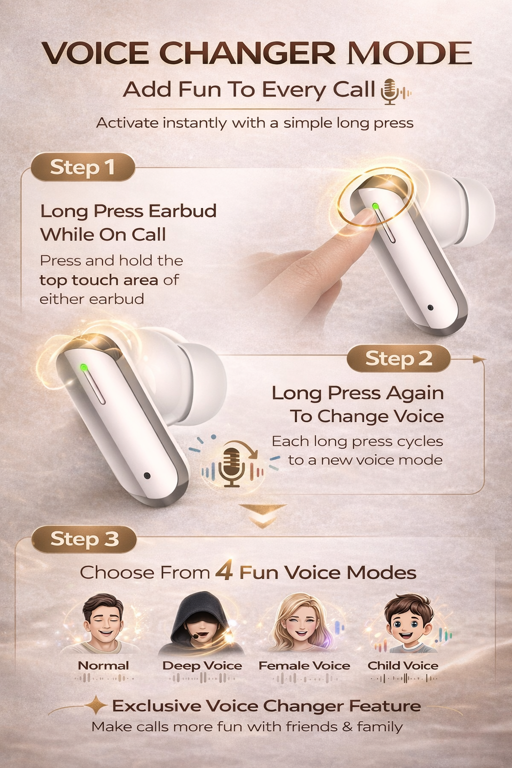 Switch between 4 fun voice effects and make every call more exciting.